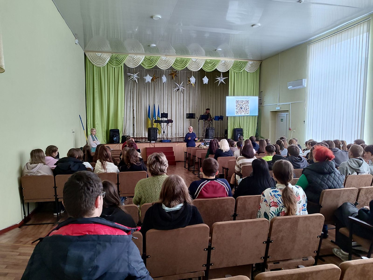 13 листопада у нашому ліцеї відбулась важлива зустріч із представниками робочої групи Криничанської громади, які презентували проєкт статуту Криничанської громади. В актовій залі зібралися старшокласники ліцею, уважно прослухали представлені для обговорення форми участі, до яких можуть долучатися діти від 14 років. Зацікавив здобувачів освіти не тільки презентаційний матеріал, а й брошури, які можна було взяти для ознайомлення про місцеві ініціативи, громадські слухання, публічні консультації, шкільний громадський бюджет, участь у молодіжній раді. Маючи таку нагоду, до старшокласників звернувся заступник голови територіальної громади із розмовою про дотримання учнями правил безпеки дорожнього руху. Особливу увагу наголосив до користувачів мототехніки, скутерів та мопедів, застеріг дітей не користуватися ними у темну пору року, особливо у зимовий період.